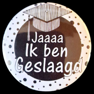waarop staat Jaaaaa ik ben geslaagd. Zo kan iedereen zien dat