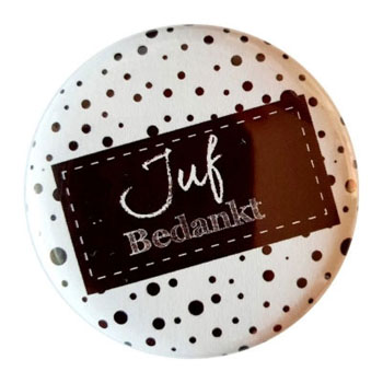 Spiegeltje juf bedankt zwart gestipt. Witte achtergrond