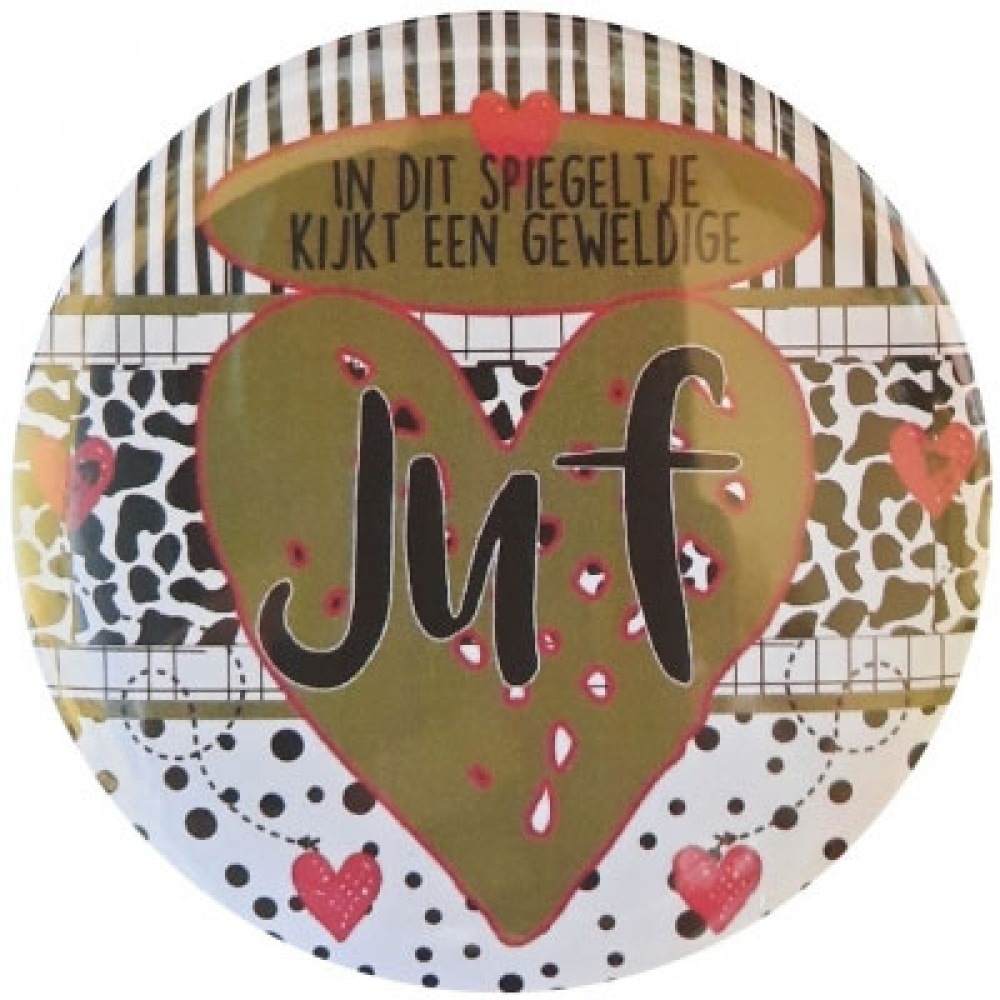 In dit spiegeltje kijkt een geweldige juf. Met een groot goudkleurig hart,