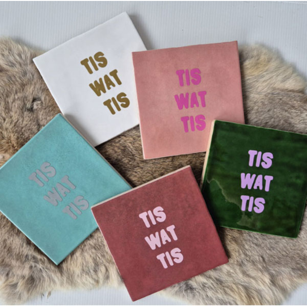 Tegeltje tis wat tis. Verkrijgbaar in meerdere kleuren