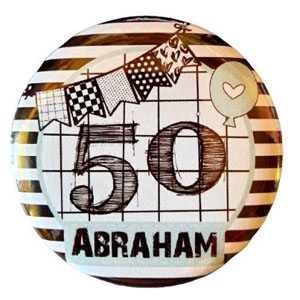 Leuke en fleurige button met de tekst 50 en Sarah of Abraham.